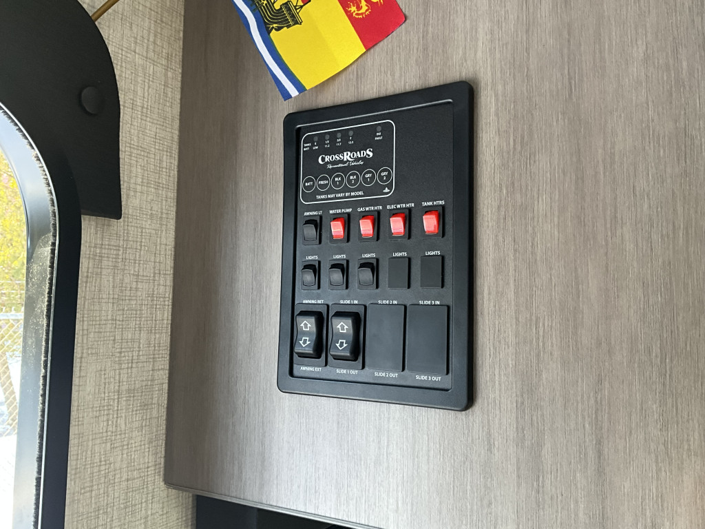 Air climatisé, Auvent électrique, Télévision, Radio, Four, Frigidaire, Micro-onde, Congélateur, Cuisinière, Roue de secours, Jack électrique aux 4 coins, Jack électrique pôle avant