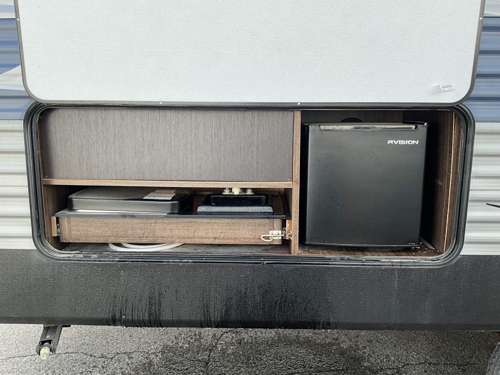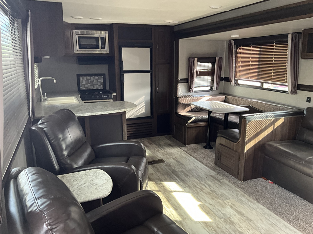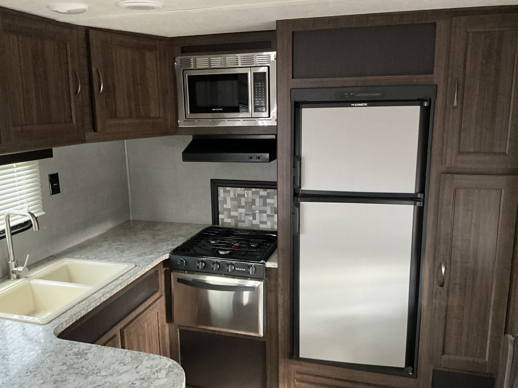 Air climatisé, Auvent électrique, Télévision, Radio, Four, Frigidaire, Micro-onde, Congélateur, Cuisinière, Douche extérieure, Jack électrique pôle avant