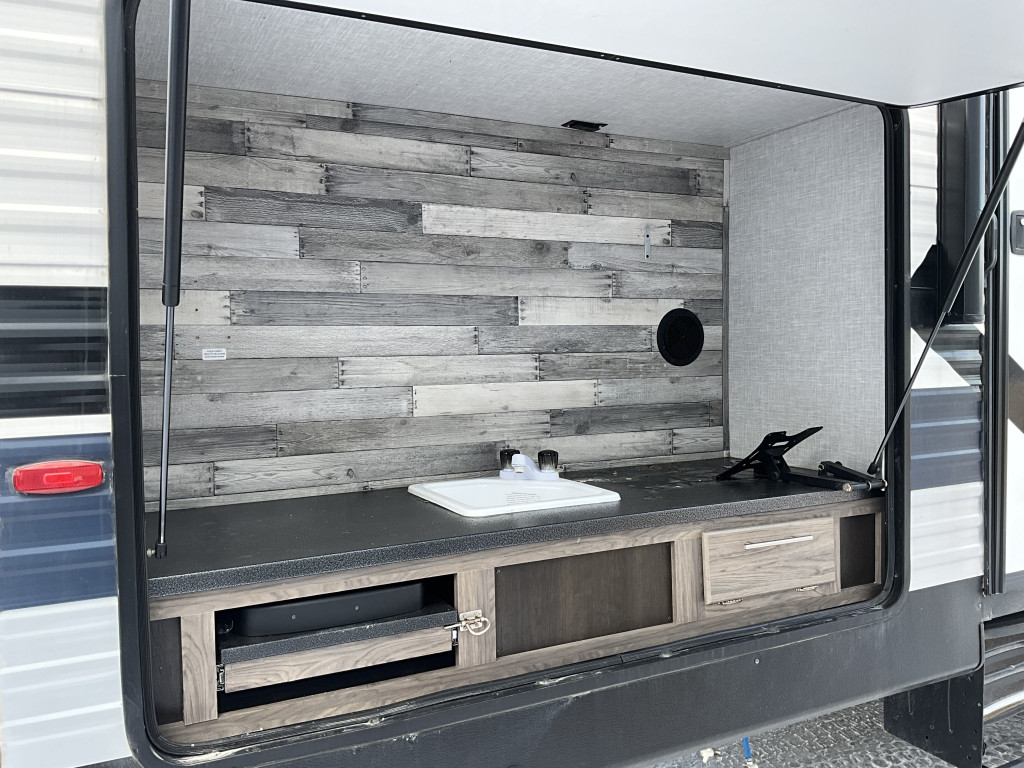Air climatisé, Auvent électrique, Radio, Four, Frigidaire, Micro-onde, Congélateur, Cuisinière, Roue de secours, Jack électrique aux 4 coins, Jack électrique pôle avant, Fil de branchement
