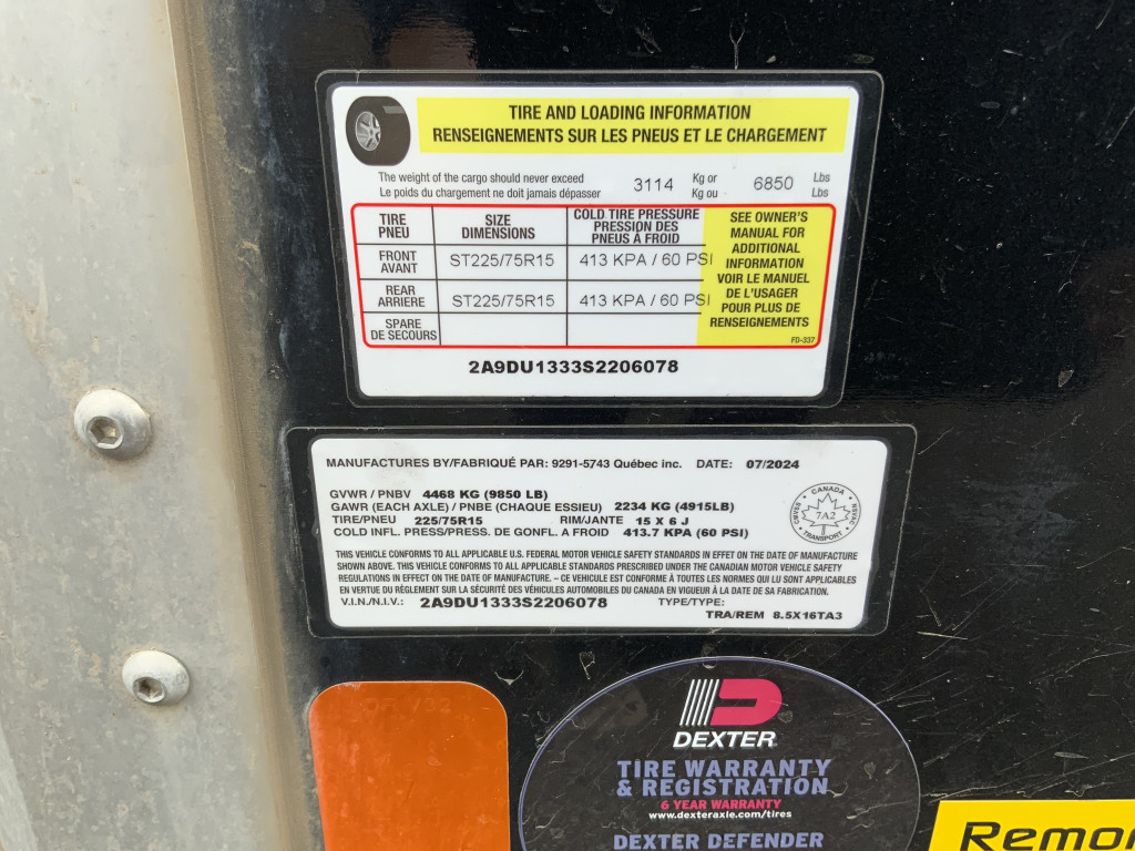Poids à vide de la remorque (lbs)