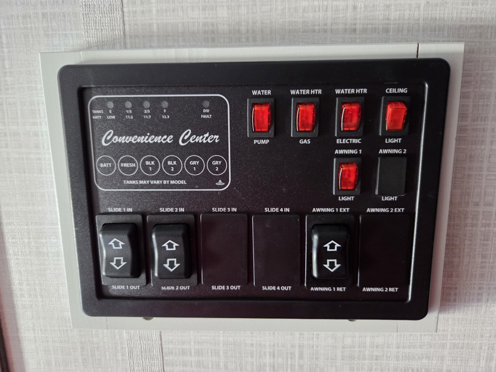 Air climatisé, Auvent électrique, Télévision, Radio, Four, Frigidaire, Micro-onde, Congélateur, Cuisinière, Roue de secours, Jack électrique pôle avant, Fil de branchement