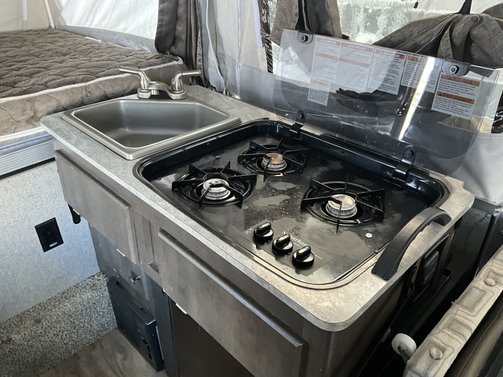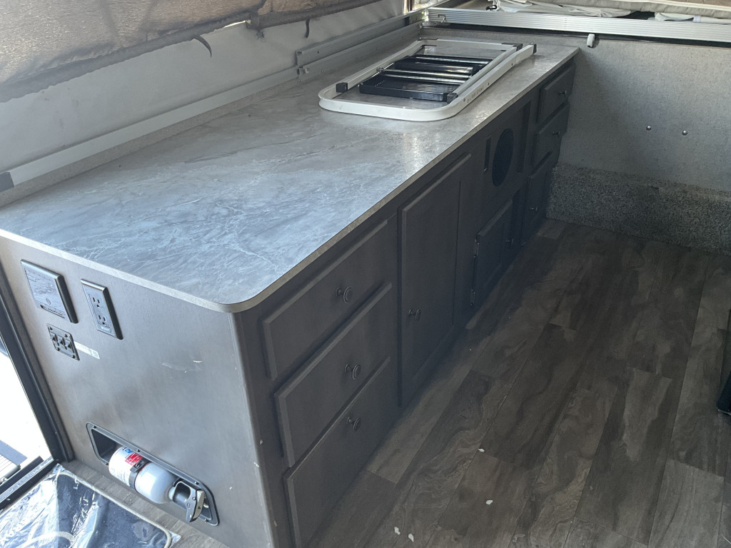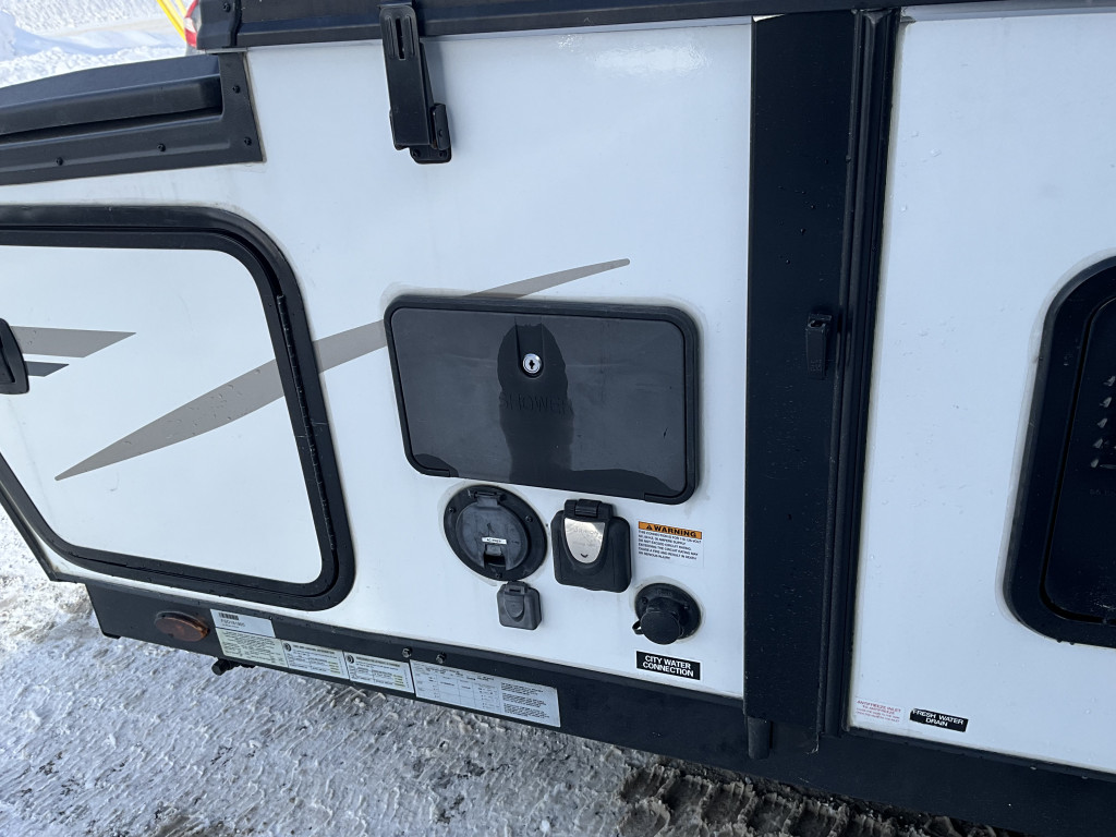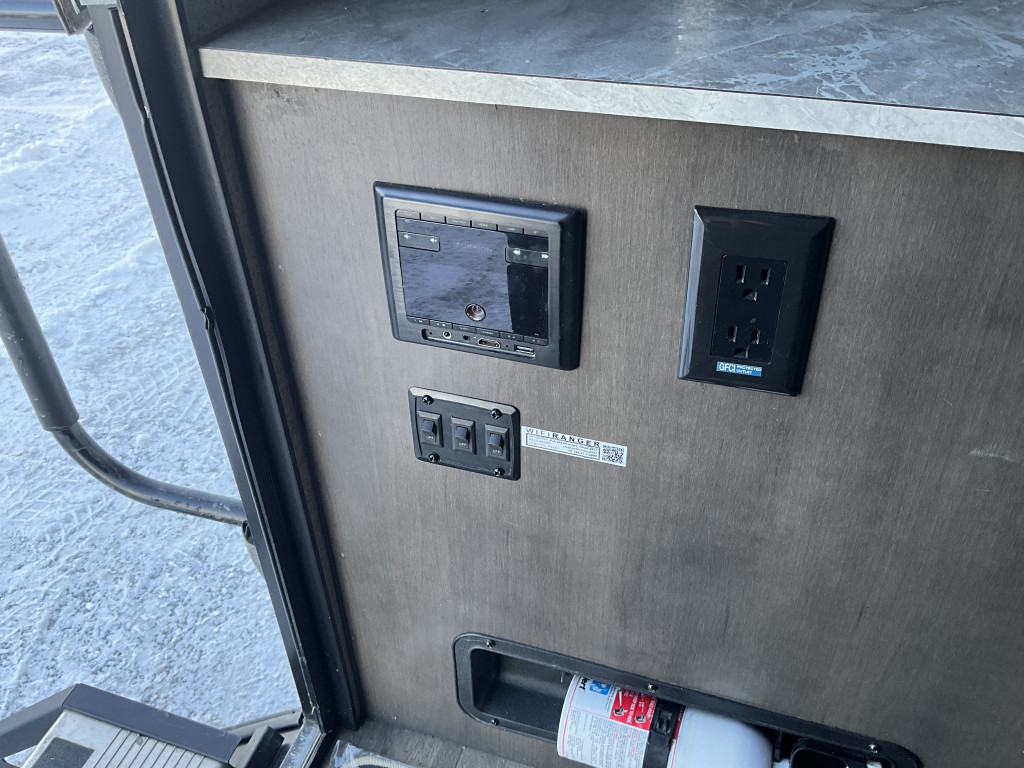 Radio, Frigidaire, Cuisinière, Douche extérieure, Roue de secours, Jack électrique pôle avant, Fil de branchement