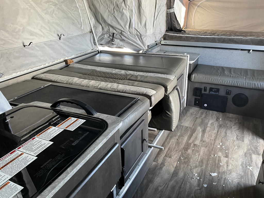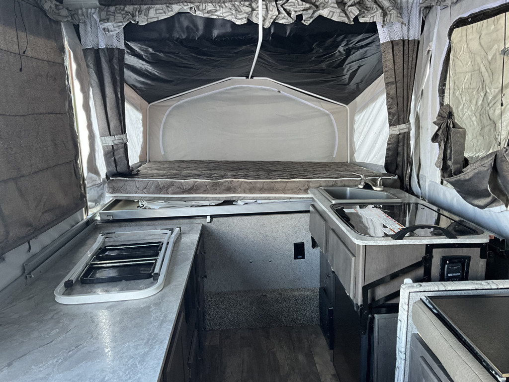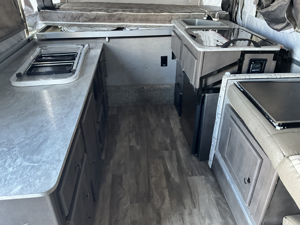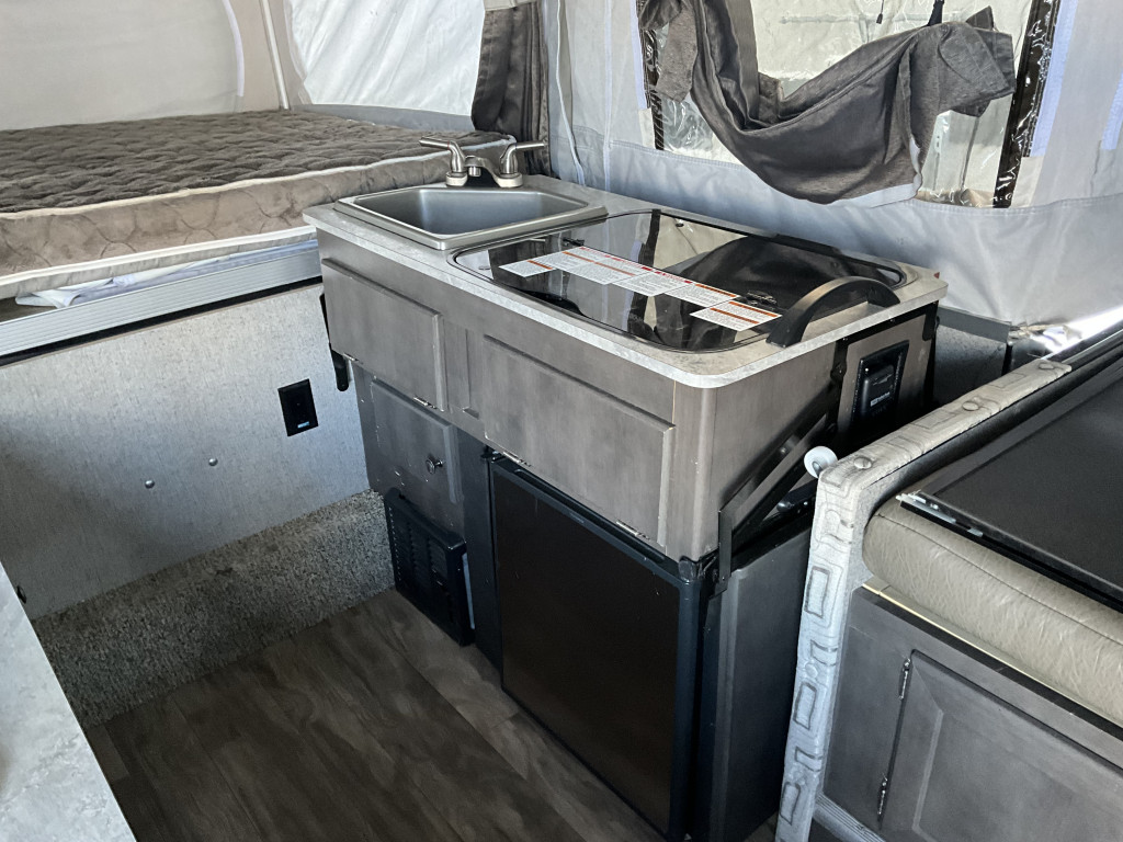 Radio, Frigidaire, Cuisinière, Douche extérieure, Roue de secours, Jack électrique pôle avant, Fil de branchement