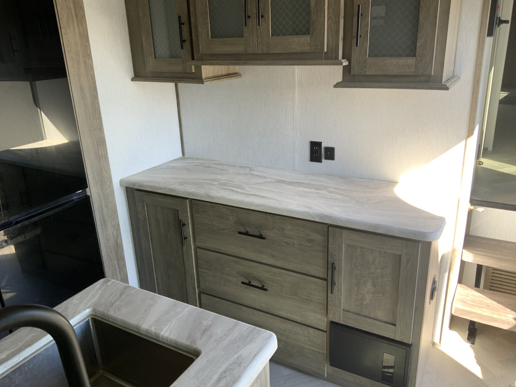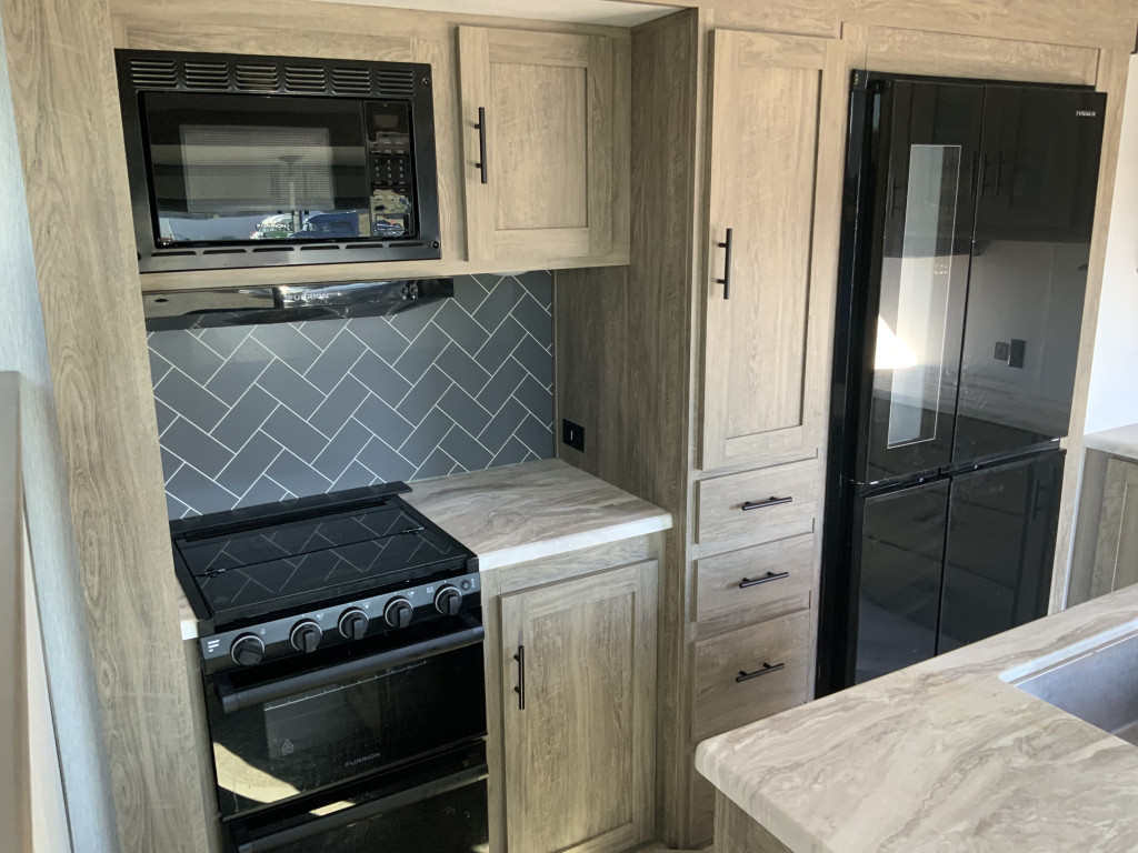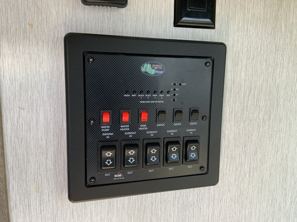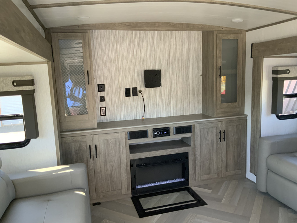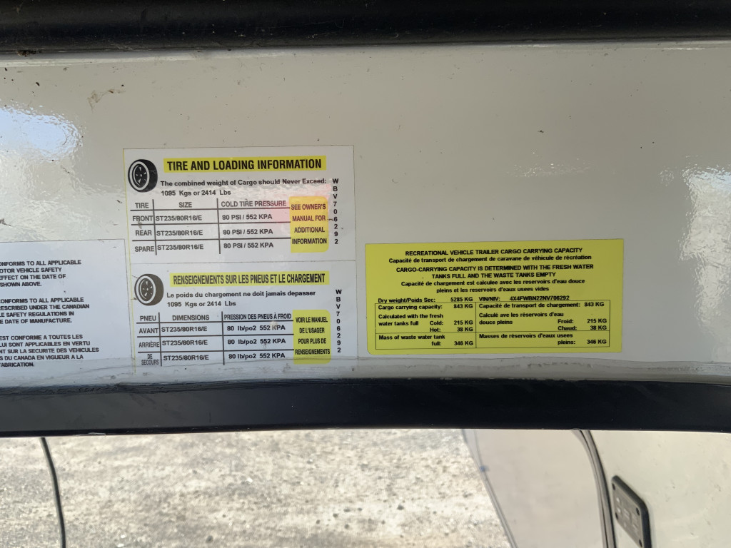 Air climatisé, Auvent électrique, Radio, Four, Frigidaire, Micro-onde, Congélateur, Cuisinière, Douche extérieure, Roue de secours, Jack électrique aux 4 coins, Jack électrique pôle avant, Fil de branchement