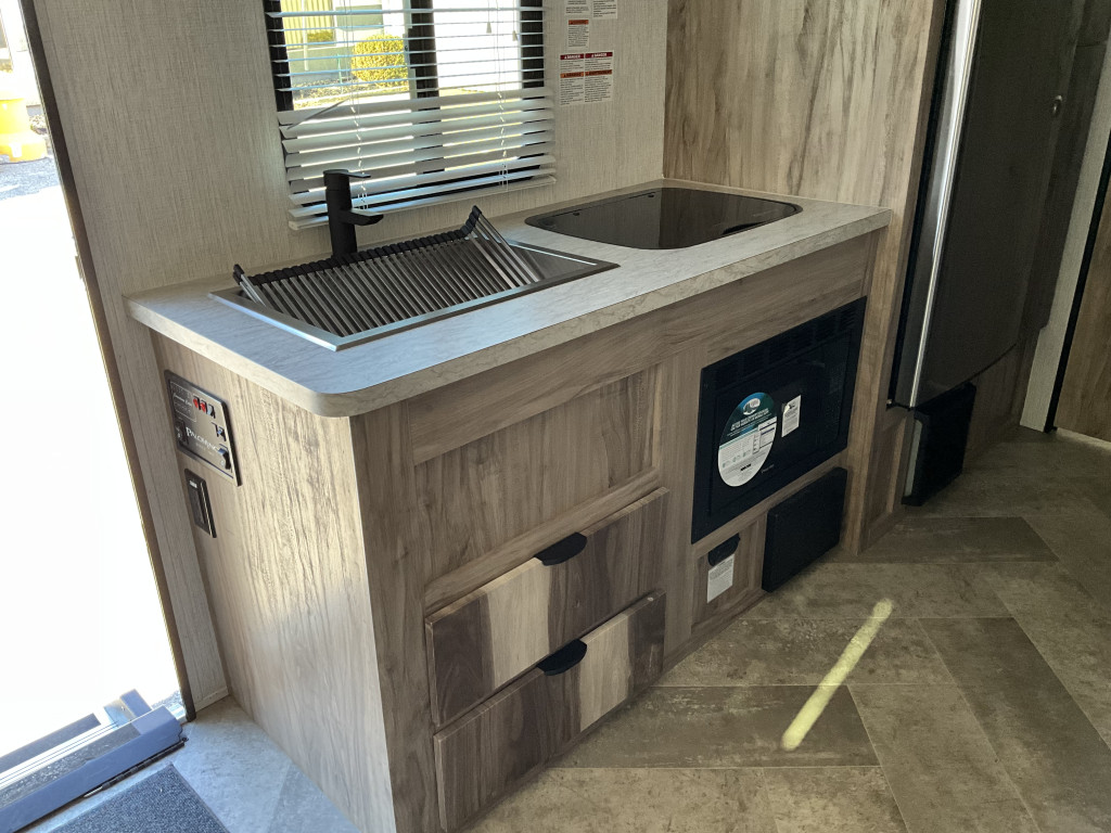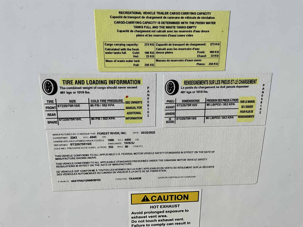 Air climatisé, Auvent électrique, Radio, Frigidaire, Micro-onde, Congélateur, Cuisinière, Douche extérieure, Roue de secours, Jack électrique pôle avant, Fil de branchement