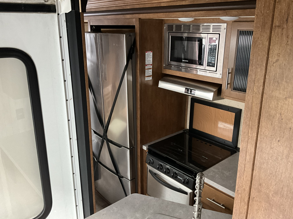 Air climatisé, Auvent électrique, Télévision, Radio, Four, Frigidaire, Micro-onde, Congélateur, Cuisinière, Roue de secours, Jack électrique aux 4 coins, Fil de branchement