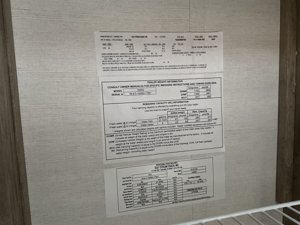 Air climatisé, Télévision, Frigidaire, Micro-onde, Congélateur, Cuisinière, Douche extérieure, Roue de secours, Fil de branchement, Panneau solaire