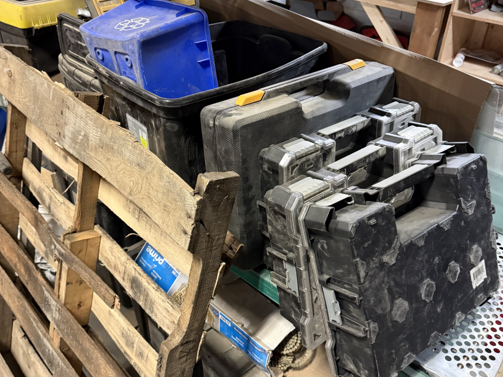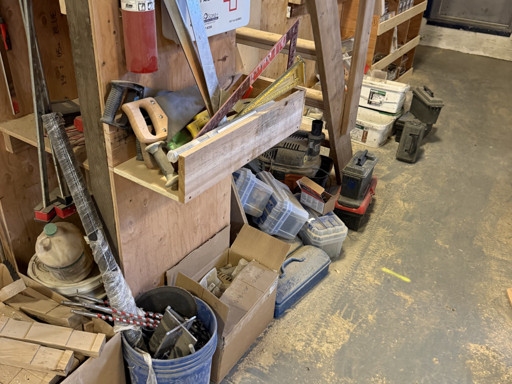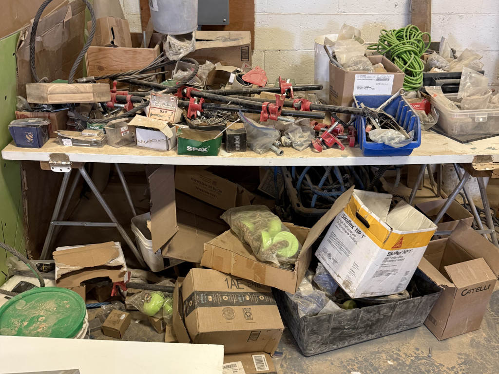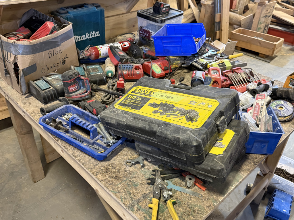 ⚠️ Inclus dans la vente: Lots de matériaux spécialisés, lot d’outils, lot mixte de bois, équipements informatiques, lot de mobilier et fournitures de bureau et lot divers